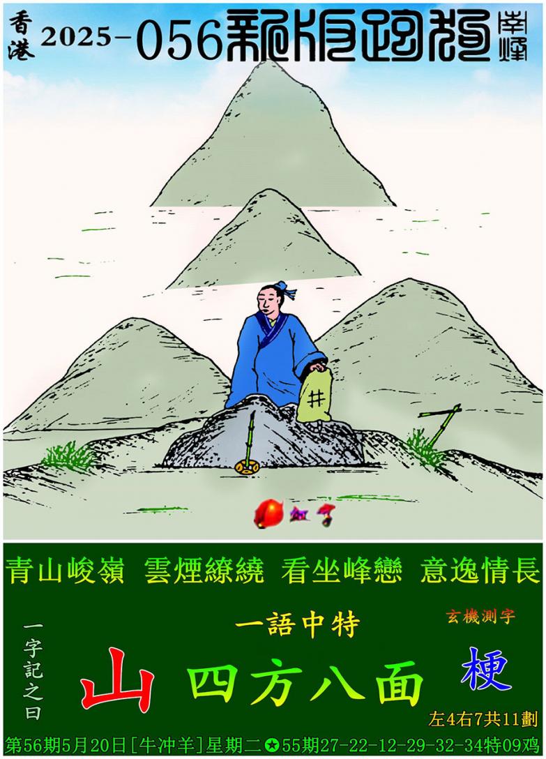 056期新版跑狗一字記之曰:【山】 玄機測字:《梗》 一語中特:四方八面