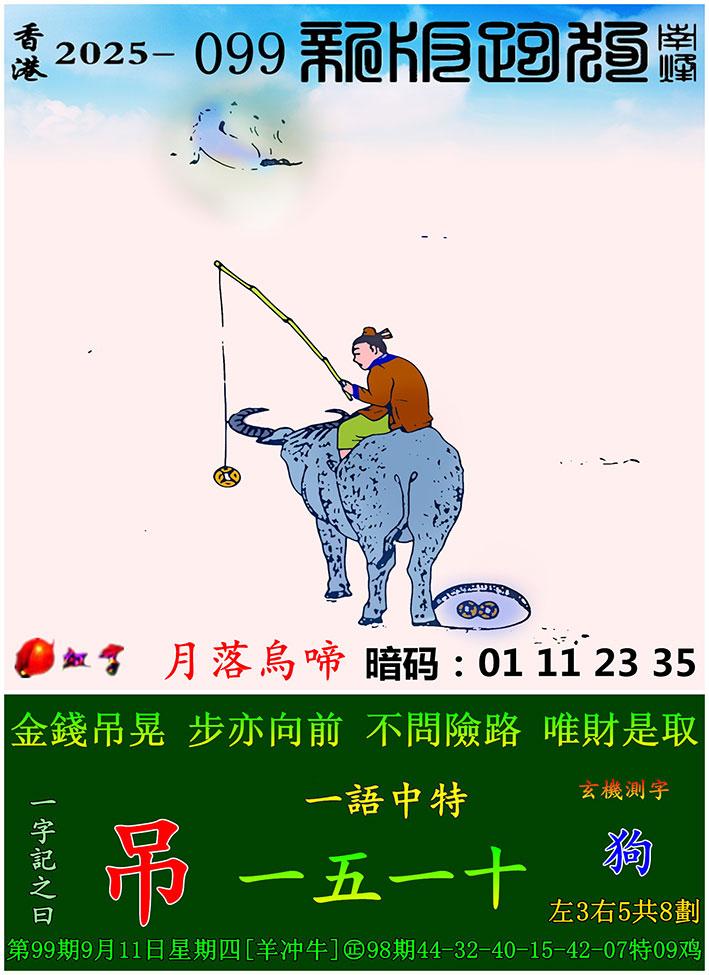 099期新版跑狗一字記之曰:【吊】玄機測字:《狗》 一語中特:一五一十