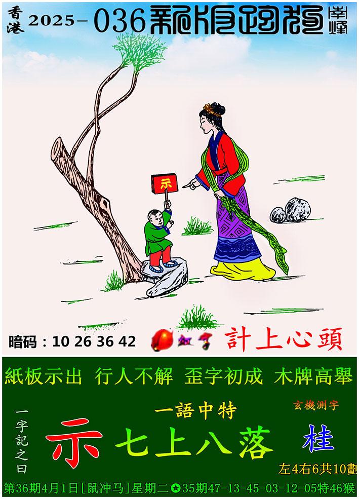 036期新版跑狗一字記之曰:【示】 玄機測字:《桂》 一語中特:七上八落