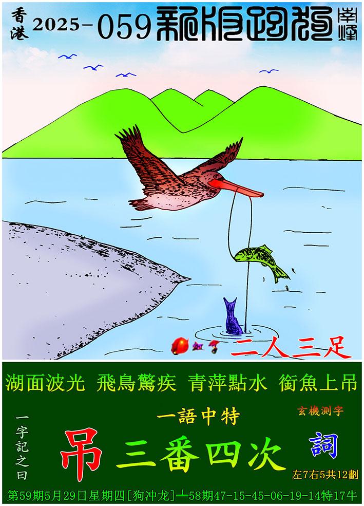 059期新版跑狗一字記之曰:【吊】 玄機測字:《詞》 一語中特: 三番四次